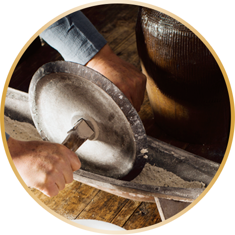 作為五城米酒傳統釀造技藝的省級非遺傳承人,方幸福大師早年就曾拜黃氏后人門下,習得黃氏獨家的米酒釀造技藝與秘方,35歲學遍五城本地的各位民間釀酒大師后,又先后去往廣西柳州、湖北孝感、江西婺源等中國著名的米酒之鄉(xiāng),不斷尋訪民間傳統米酒釀造技藝,取各家之所長,最終開創(chuàng)了獨創(chuàng)的五城米酒釀造體系。 方幸福大師在釀酒時,嚴格地遵循了古時黃氏一族釀造五城米酒的三種必要條件:優(yōu)質糯稻、純凈水源和獨家釀造秘方,故將現在自家釀造出的五城米酒取名為三寶,以示對黃氏的尊敬與懷念。